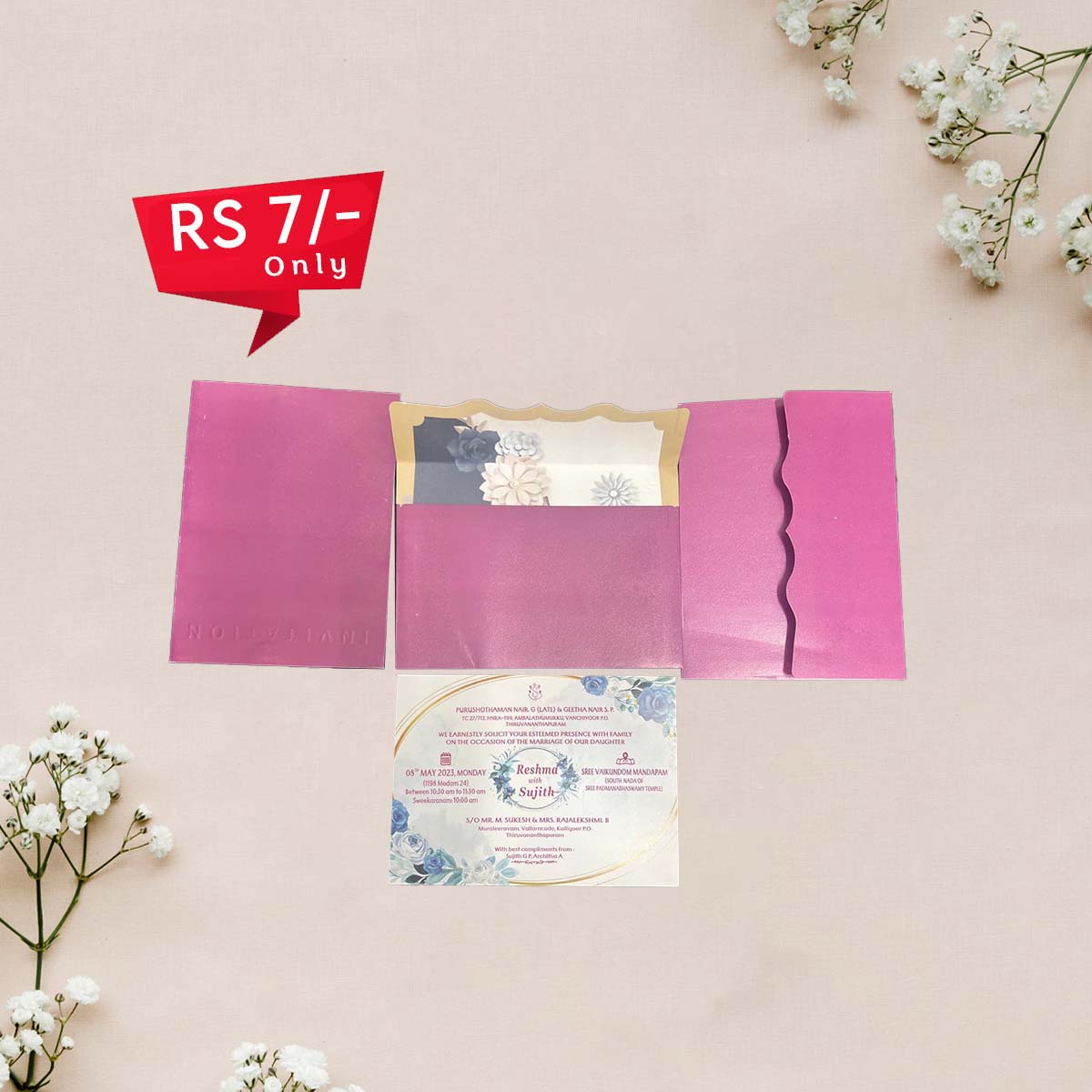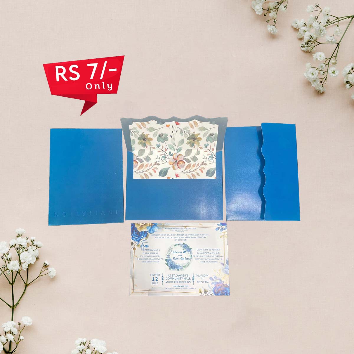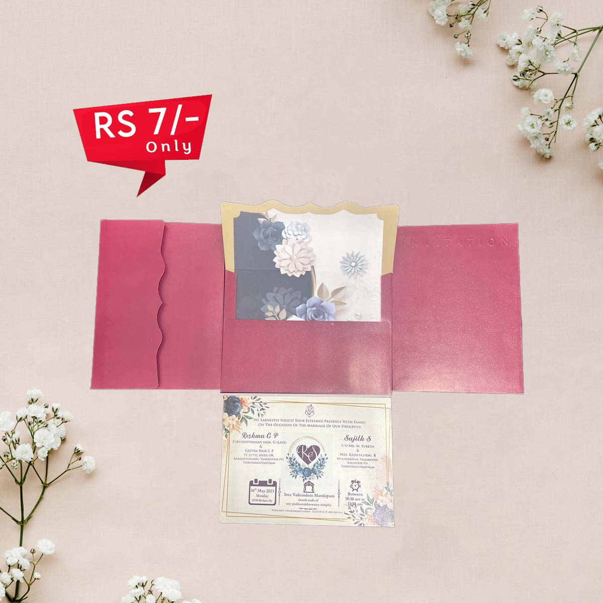 This elegant Golden Floral Invitation Card is designed with a modern yet traditional touch. The outer cover is crafted in a golden finish with stylish cut patterns, while the inner card features a beautiful floral design, making it a perfect choice for weddings, engagements, or any special occasion. With its premium look at an affordable price, this card adds grace and charm to your celebrations.