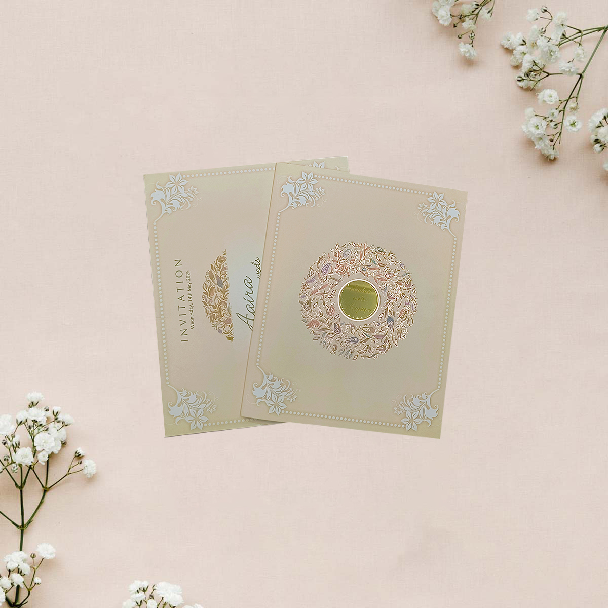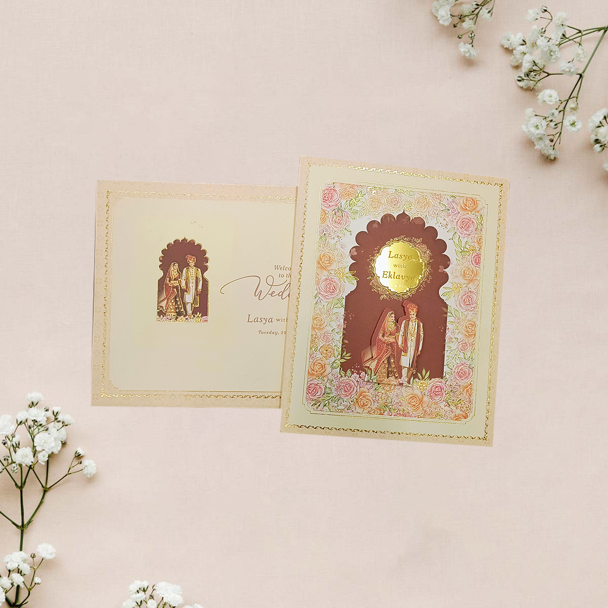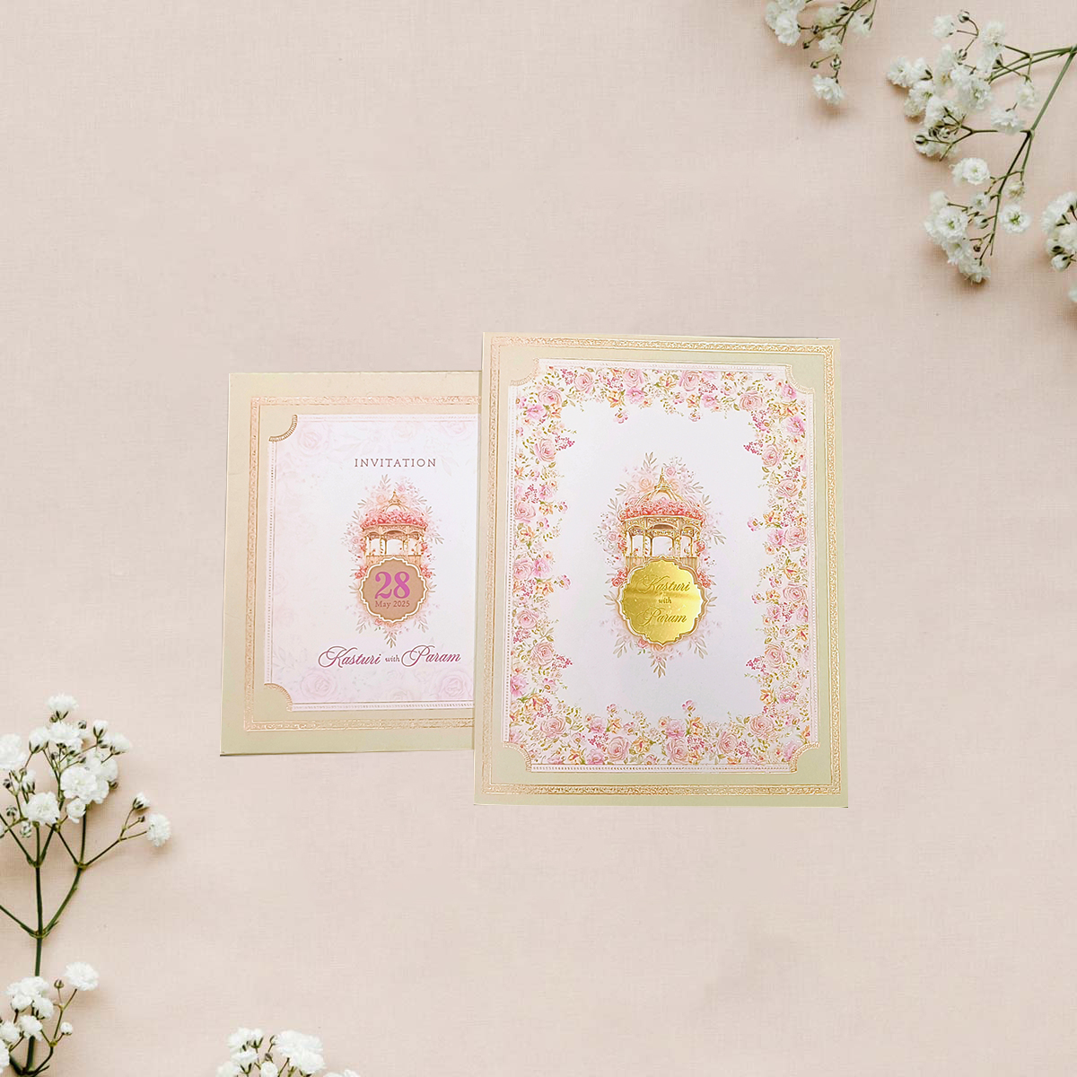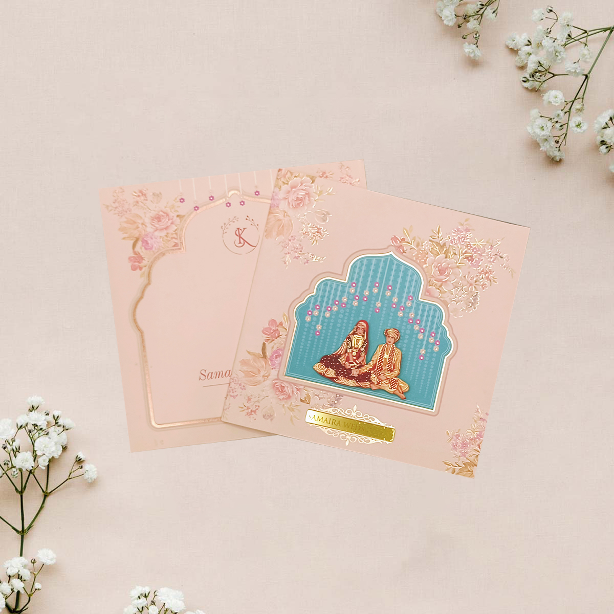 Embrace timeless elegance with our Blush Royale Wedding Invitation, designed in a soothing pastel pink with intricate gold foiling. The card features a regal lace-inspired border and an ornate central frame that highlights the couple’s names beautifully. Perfect for couples who adore a touch of luxury and sophistication, this design effortlessly combines tradition with modern finesse.