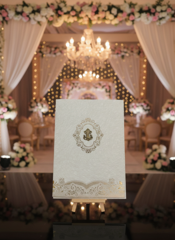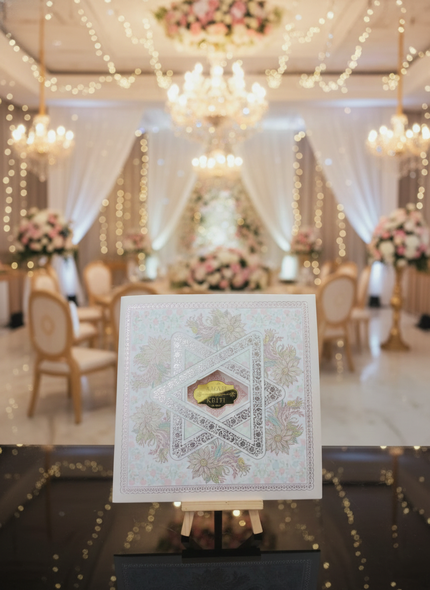 Perfect for weddings rooted in tradition, this card blends classic artistry with premium craftsmanship, making it a cherished keepsake for every guest.