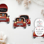 • Playful Design: Shaped like a red car with a bride and groom illustration, perfect for fun-loving couples.